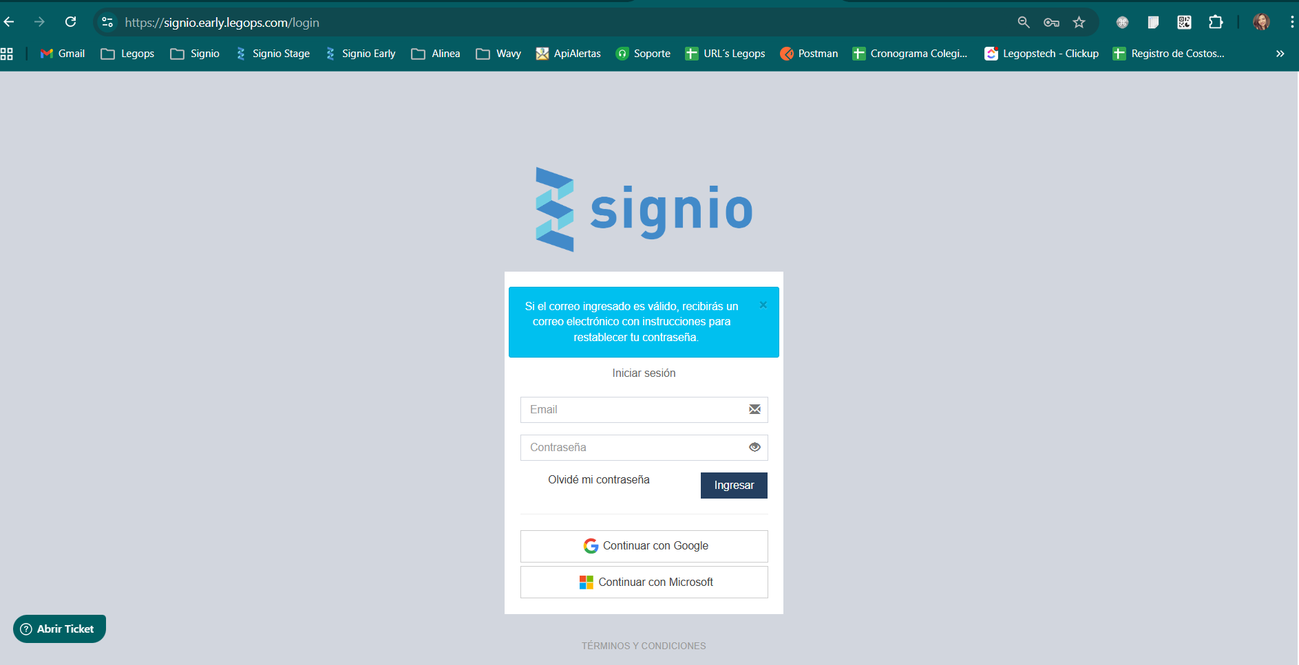 En caso que requieras hacer un cambio en la contraseña de acceso a Signio, debes ingresar a nuestro enlace principal: